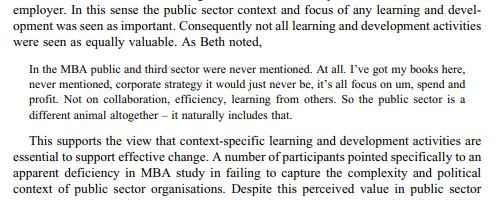 One aspect highlighted was the extent to which it was seen as important that any learning and development was sector specific as the following extract highlights: